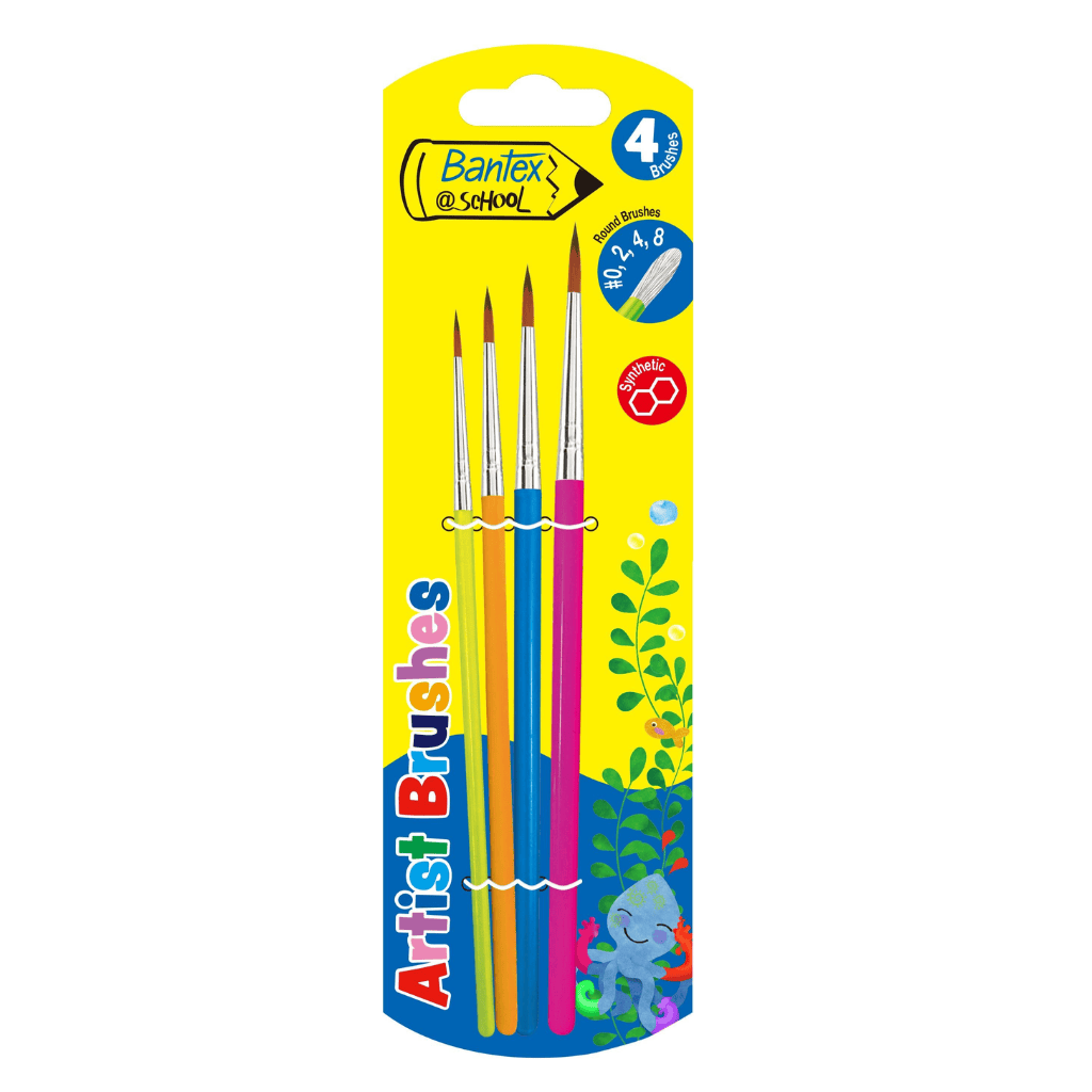 Plastic, colourful brush body with fine, synthetic brush fibres.