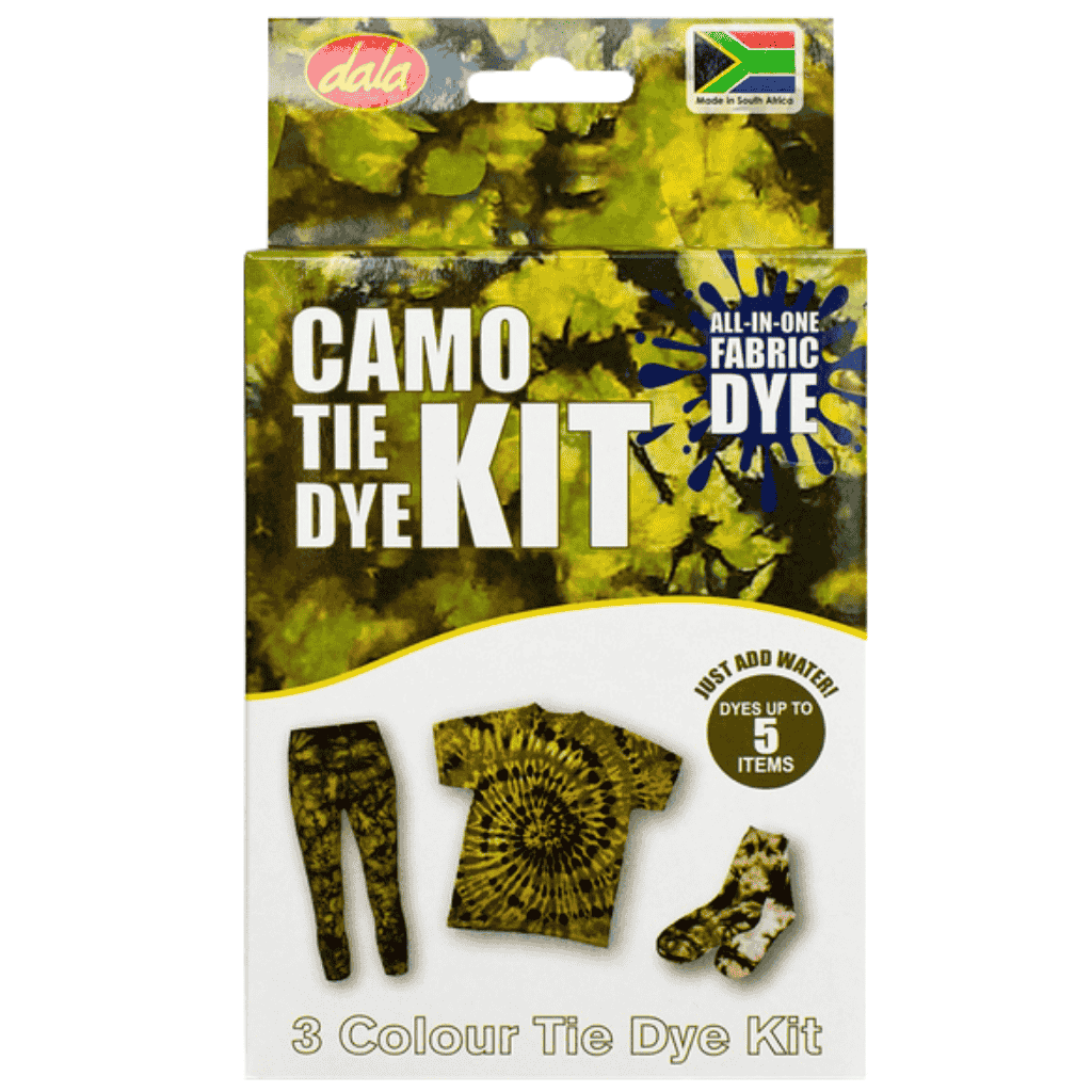 Dala’s easy-to-use mini Camo Tie Dye Kit is a must-have for all your tie dye needs. Simply add water and you’re ready to create traditional and new dye patterns. 3 Dye Colours – Olive Green, Brown and Black Pair of Gloves Rubber Bands Instructional sheet with dye techniques and post-dye care instructions.