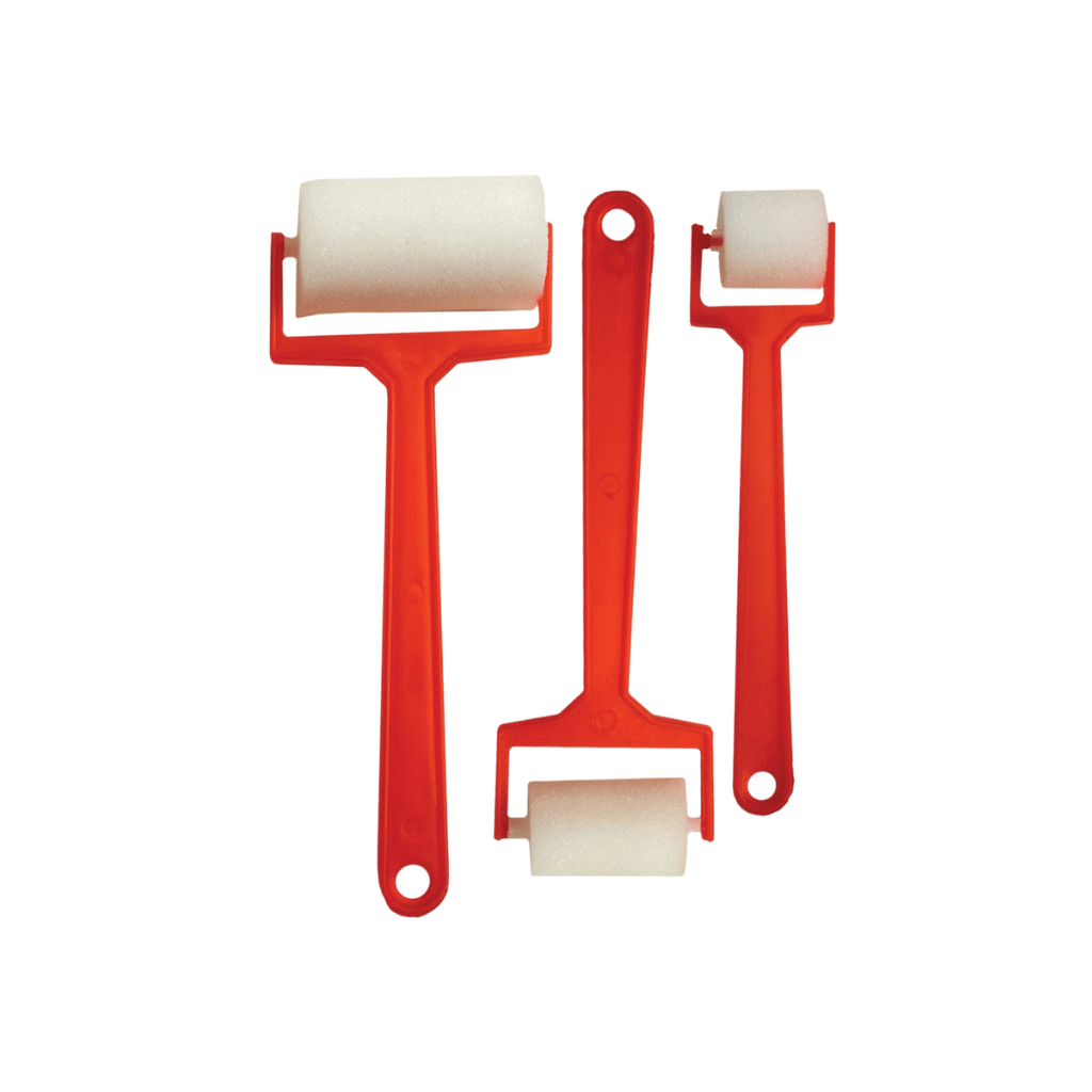 These handy little rollers feature a soft and absorbent foam sponge roller that is perfect for work with thick and thin colour products such as inks and paints, liquid tempera, glue and craft paints to name a few. Size: 25 / 40/ 60mm