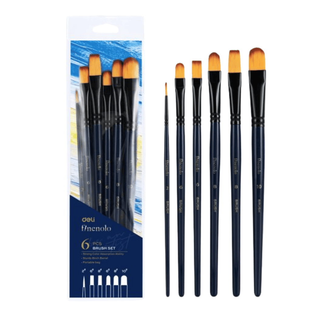 Deli Finelono Acrylic Paint Brush Set of 6 Assorted Sizes