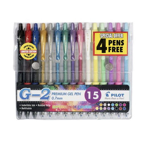 Pilot G2 0.7mm Gel Ink Rollerball Art Wallet of 15 (11+4)