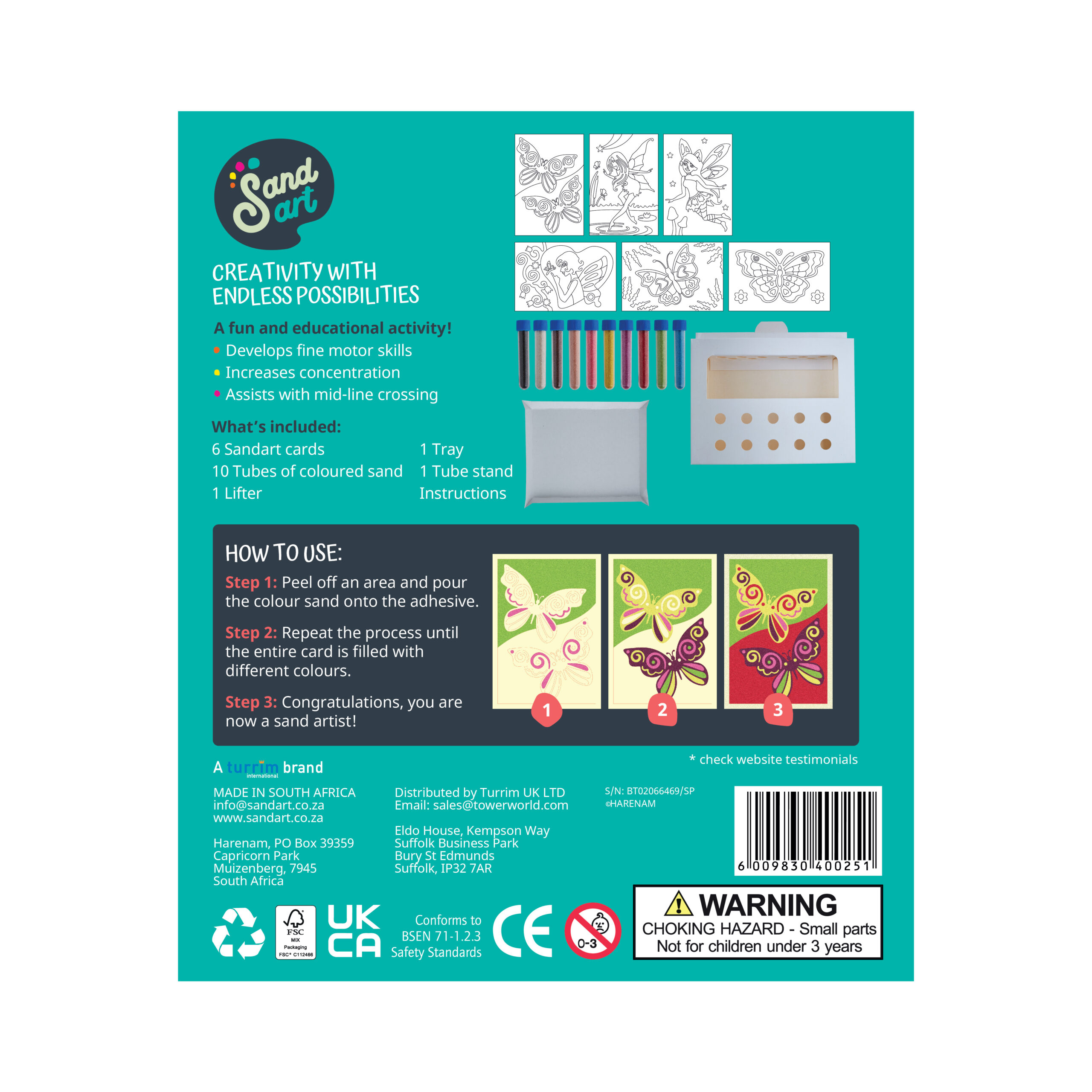 The Fairies and Butterflies 6-Pack Sandart kit is a wonderful DIY project for children who love fantasy-themed crafts. This creative and fun activity is perfect for kids who want to explore their creativity while also developing their fine motor skills.